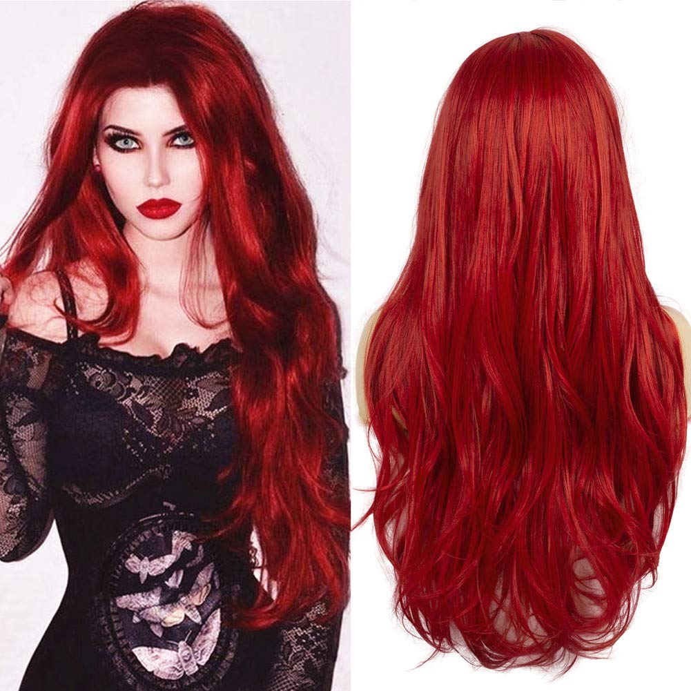 Amazon Com Swiking Red Long Wigs For Women Curly Wave Middle Part Wig Natural Looking Wig Heat Resistant Replacement Synthetic Hair For Daily Party Halloween Beauty Personal Care